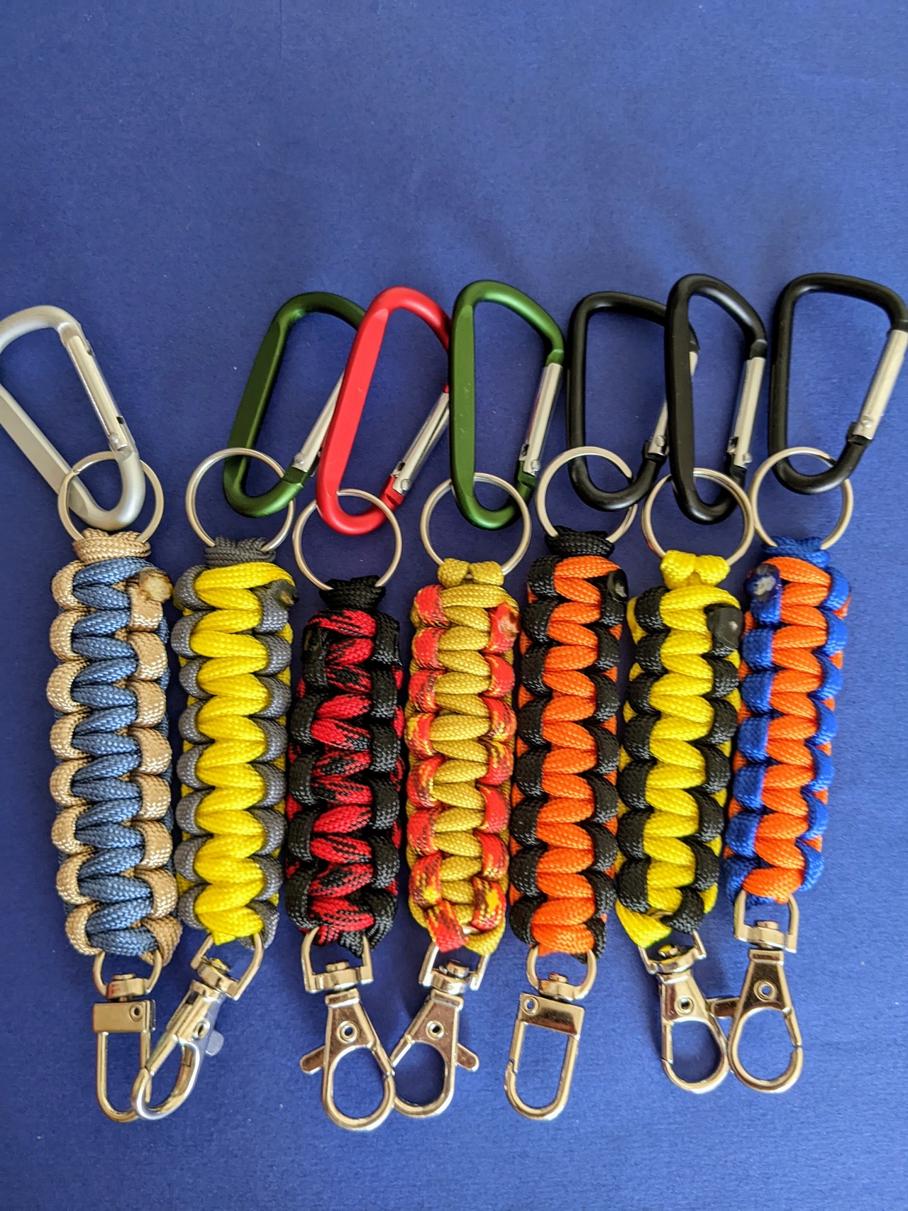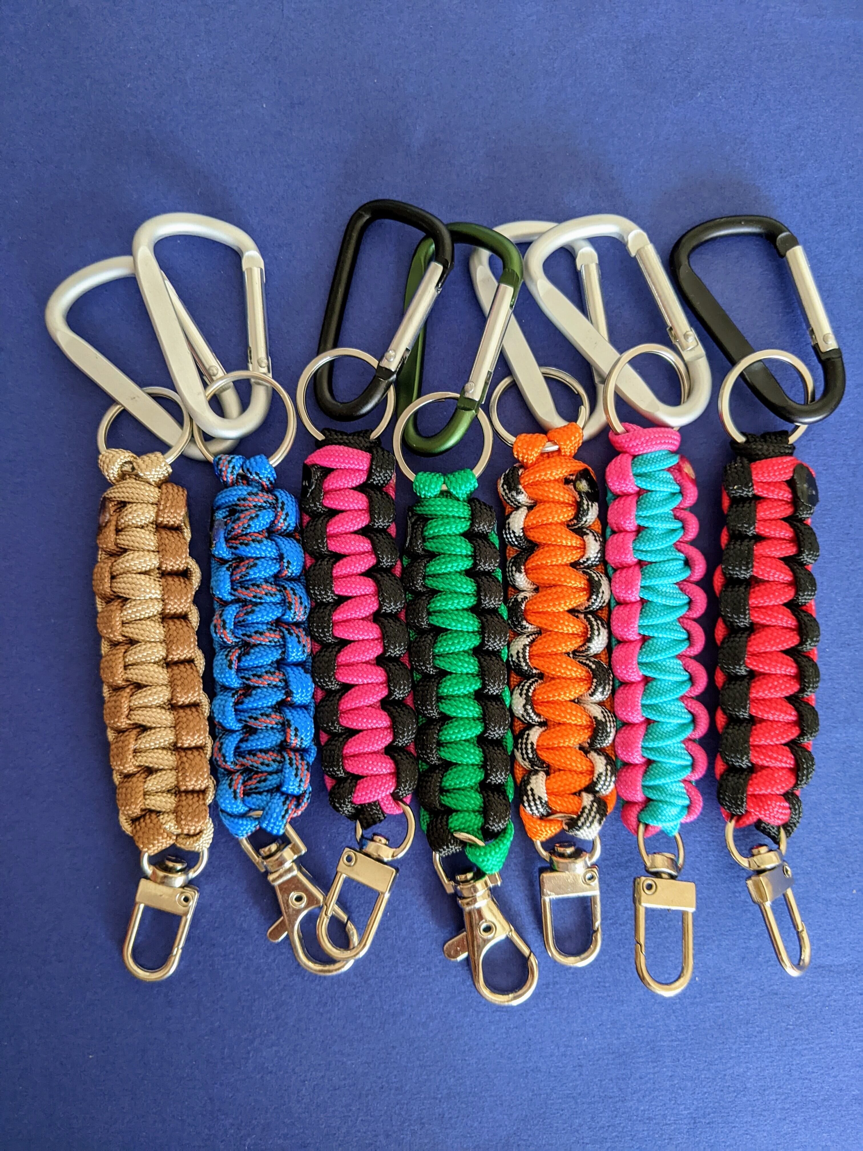 丈夫なパラシュートコードで作製したキーホルダーです。